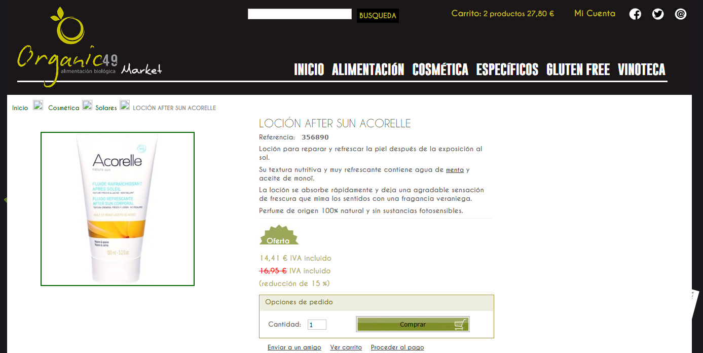 En la web de Organic49Market encontrarás todo tipo de productos de Alimentación Biológica y Sin Gluten, Cosmética Natural, Vinoteca y mucho, mucho más, hazles una visita y seguro que alguno de sus productos te interesa.